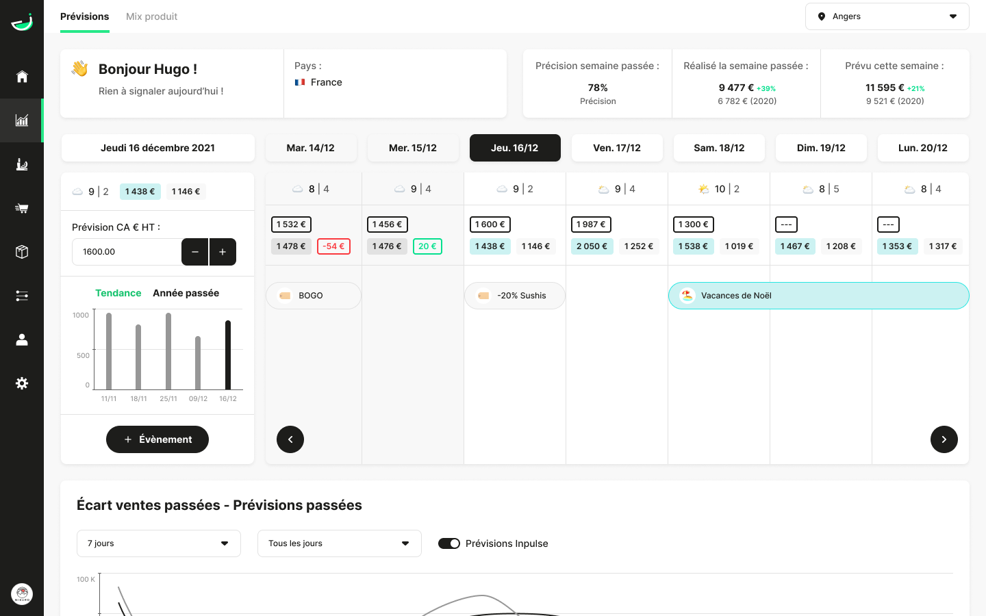 Les algorithmes Inpulse enrichissent tous les modules opérationnels pour maximiser leur efficacité : passer les bonnes commandes, produire juste ce qu'il faut, éviter les pertes ou les ruptures et améliorer sa marge. Nos clients comme OFC, Coté Sushi, Blend Hamburger, Columbus Café ou Wasabi Corner gagnent jusqu'à 5 points de marge sur leur coût matière.