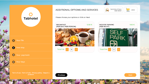 Interface de mobile check-in Tabhotel