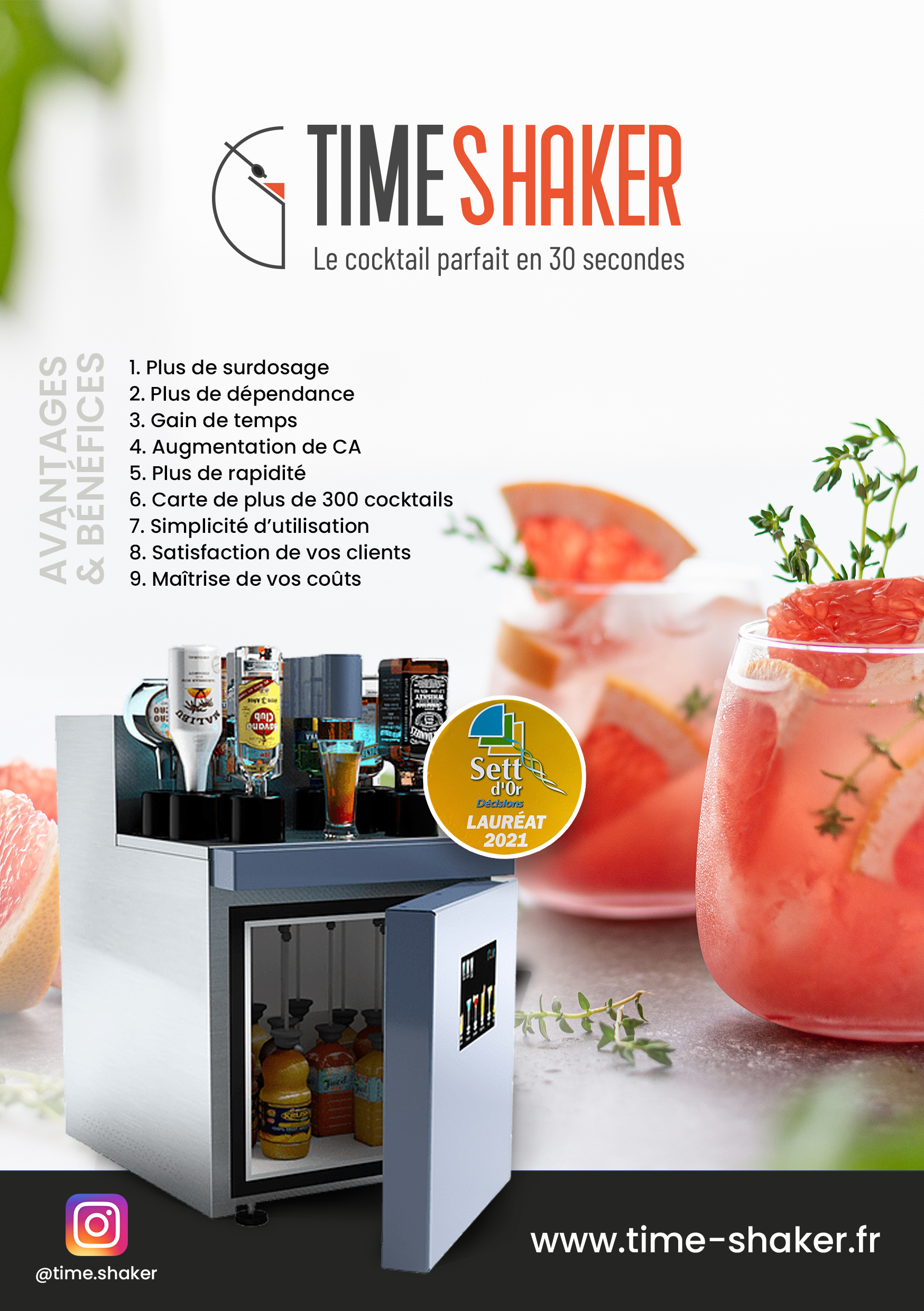 Après 36 mois de R&D et le dépôt de 3 brevets, la première machine à cocktails permettant de répondre aux problématiques des débits de boissons est née :
